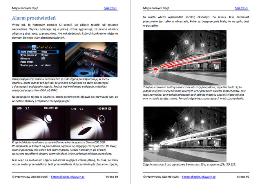 W poradniku „Magia nocnych zdjęć” opisuję również ponad trzydzieści nocnych tematów fotograficznych. Dowiesz się więc, jak robić tego typu zdjęcia, jakiego sprzętu użyć i jak się przygotować. Poznasz problemy, z którymi trzeba się zmierzyć i zobaczysz, jak je rozwiązać.