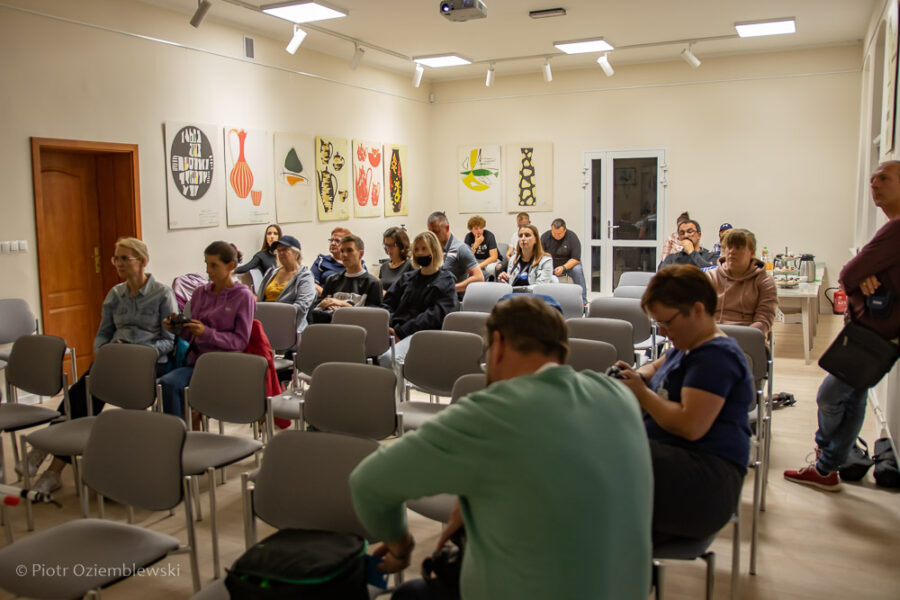 Warsztaty rozpoczęły się o 19:30 w Miejskiej Bibliotece Publicznej w Chodzieży. W początkowej prezentacji zaprezentowałem zalecane ustawienia aparatu do zdjęć malowania światłem. Była przy tym mowa o korzystaniu z trybu manualnego, o sposobie na ręczne ustawianie ostrości oraz o konkretnych parametrach ekspozycji, które będą potrzebne do uzyskania poprawnego naświetlenia kadru.