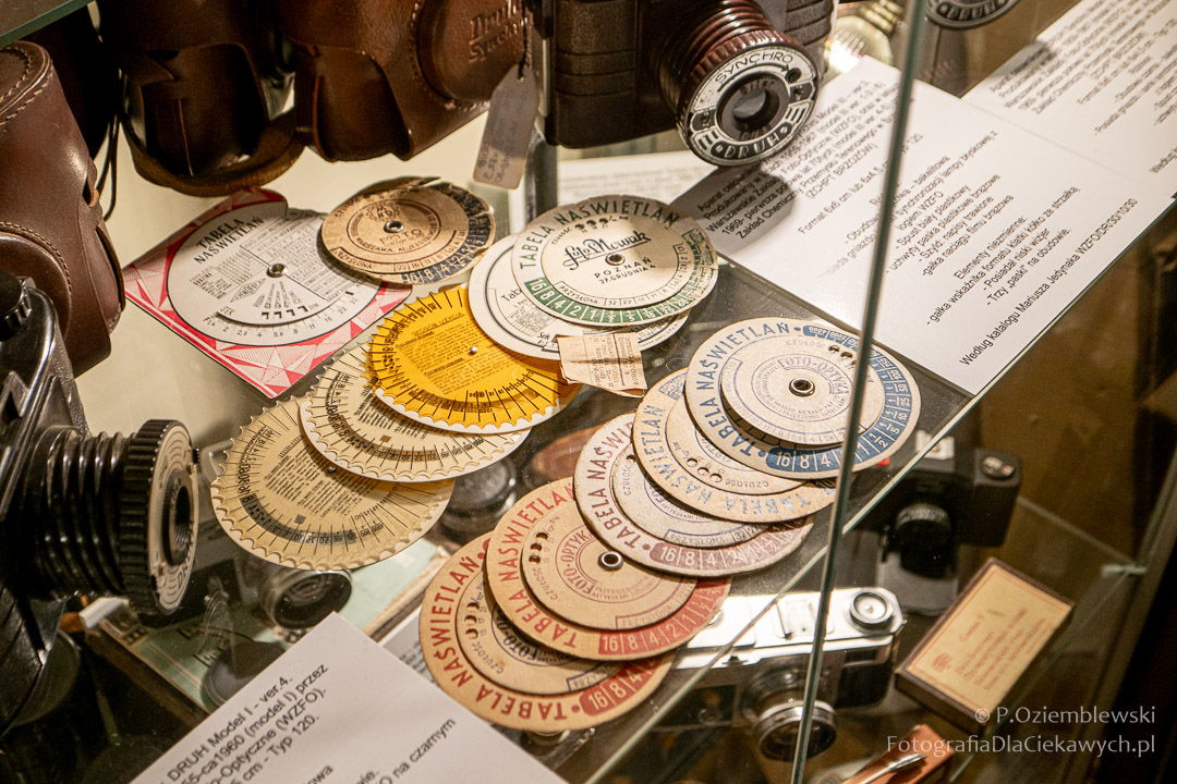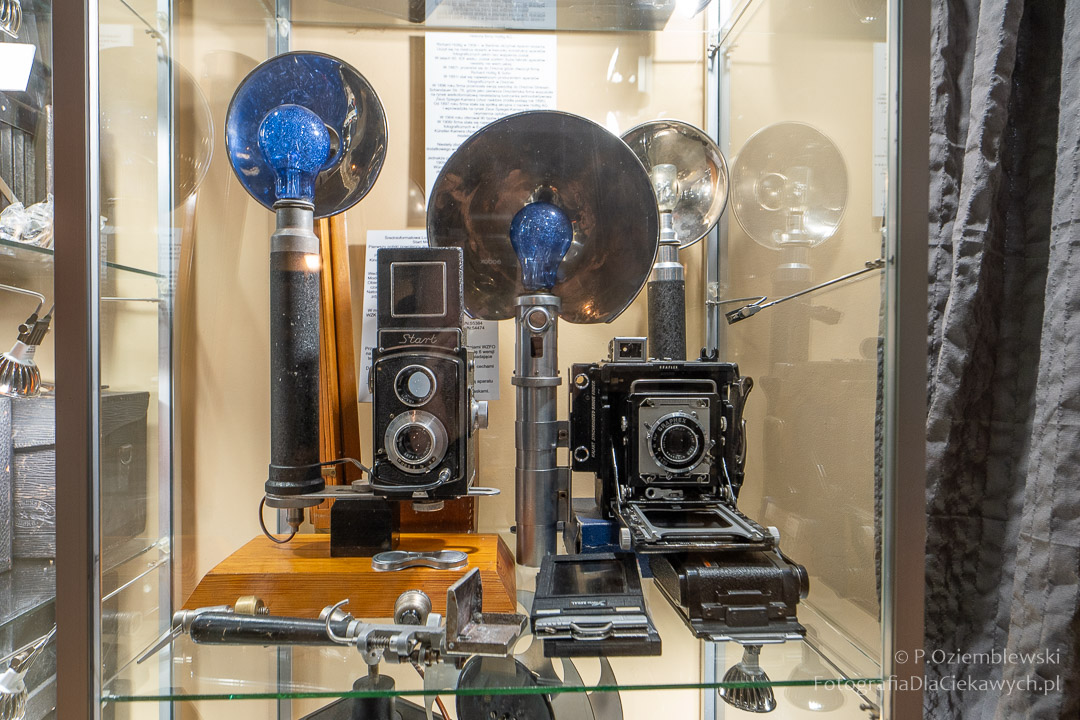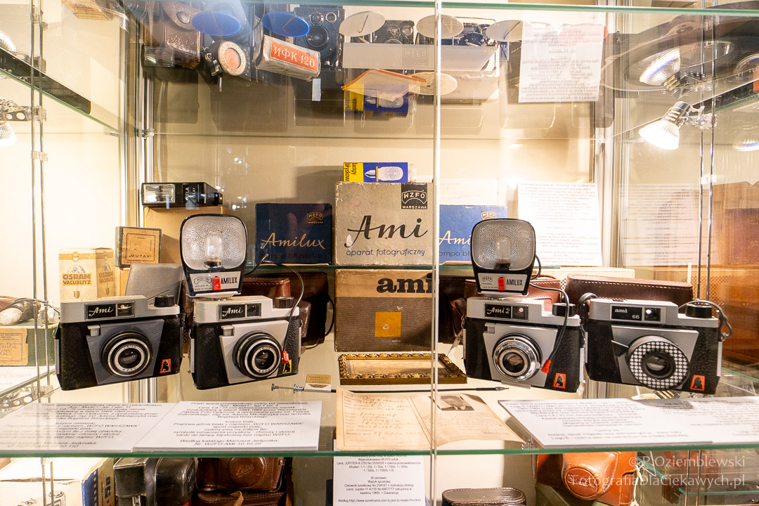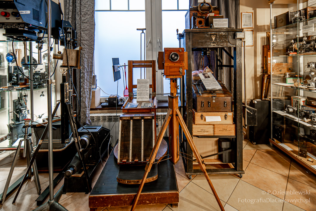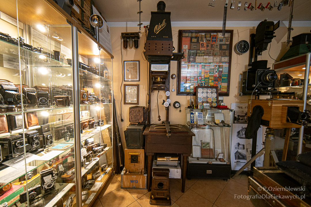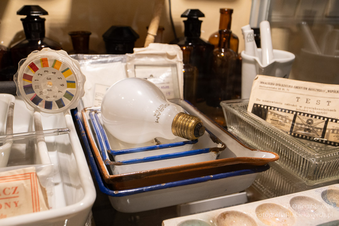 Jest tam pokazanych wiele ciekawych eksponatów. Zarówno kompletnych konstrukcji, jak i różnych elementów składowych. Jest też pokazana Polska myśl techniczna w postaci np. aparatów fotograficznych: Filma R1, Filma R2, Alfa-2, Start, Ami, Druh. Inne akcenty to porcelanowe kuwety fotograficzne produkowane w Chodzieży i Ćmielowie. Nie zabrakło też materiałów i odczynników do fotografii analogowej.