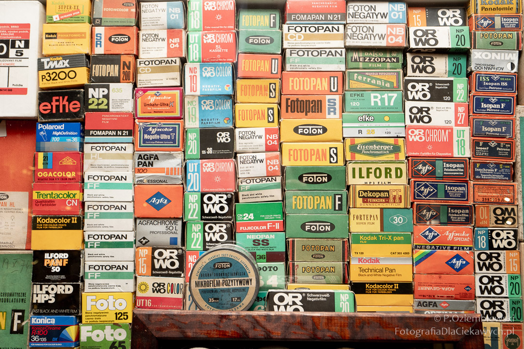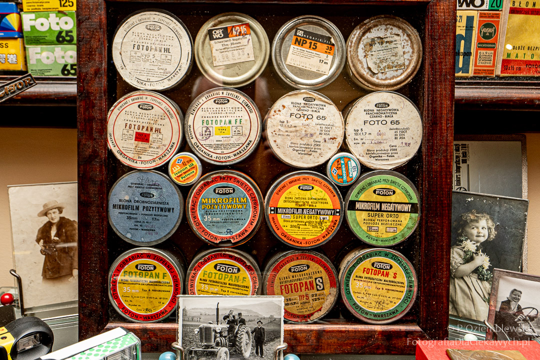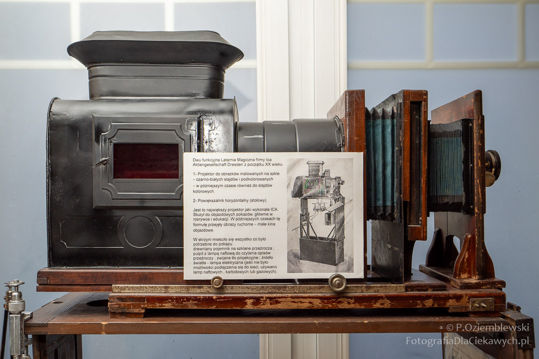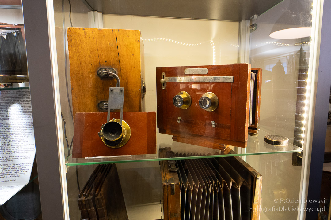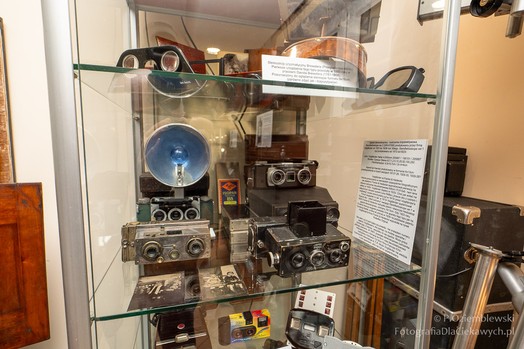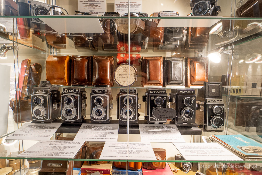 Jest tam pokazanych wiele ciekawych eksponatów. Zarówno kompletnych konstrukcji, jak i różnych elementów składowych. Jest też pokazana Polska myśl techniczna w postaci np. aparatów fotograficznych: Filma R1, Filma R2, Alfa-2, Start, Ami, Druh. Inne akcenty to porcelanowe kuwety fotograficzne produkowane w Chodzieży i Ćmielowie. Nie zabrakło też materiałów i odczynników do fotografii analogowej.